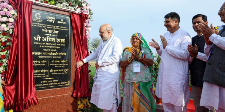 केन्द्रीय गृह एवं सहकारिता मंत्री अमित शाह ने शनिवार को बनास डेयरी परिसर में नवनिर्मित बायो-सीएनजी एवं फर्टिलाइज़र प्लांट का उद्घाटन और 150 टन क्षमता वाले पाउडर प्लांट का शिलान्यास किया। कार्यक्रम में गुजरात विधानसभा अध्यक्ष शंकर चौधरी, केन्द्रीय सहकारिता राज्य मंत्री कृष्ण पाल गुर्जर, मुरलीधर मोहोल, सहकारिता सचिव डॉ. आशीष भूटानी सहित बड़ी संख्या में जनप्रतिनिधि और अधिकारी मौजूद रहे।